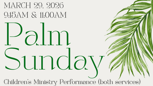 Join us on Palm Sunday, March 29th, for a special performance by our Children's Ministry (ages 2-5th grade) during both services at 9:15am and 11:00am!