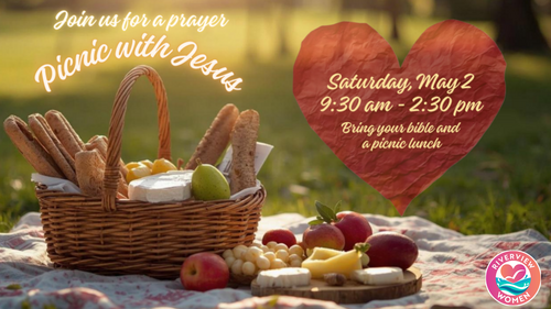 The Women's Ministry is hosting a Prayer Picnic with Jesus on Saturday, May 2nd from 9:30am-2:30pm. The event is FREE, open to high school and up, with no childcare provided. Sign-up!