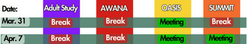 *Please note the Easter Break Night4All Ministry Schedule*