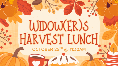 The Widow and Widower's Ministry is hosting a Harvest Lunch and Bunco on Saturday, October 25th at 11:30am at the McReynolds’ home! Carpooling is available. Contact the church for more information.