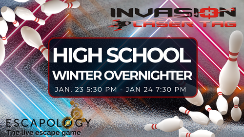 High School's Winter Overnighter is this Friday, January 23rd through Saturday, January 24th! There are 11 spots remaining, the cost is $200 and includes Laser Tag, Escapology, Bowling, and a Trampoline Park.