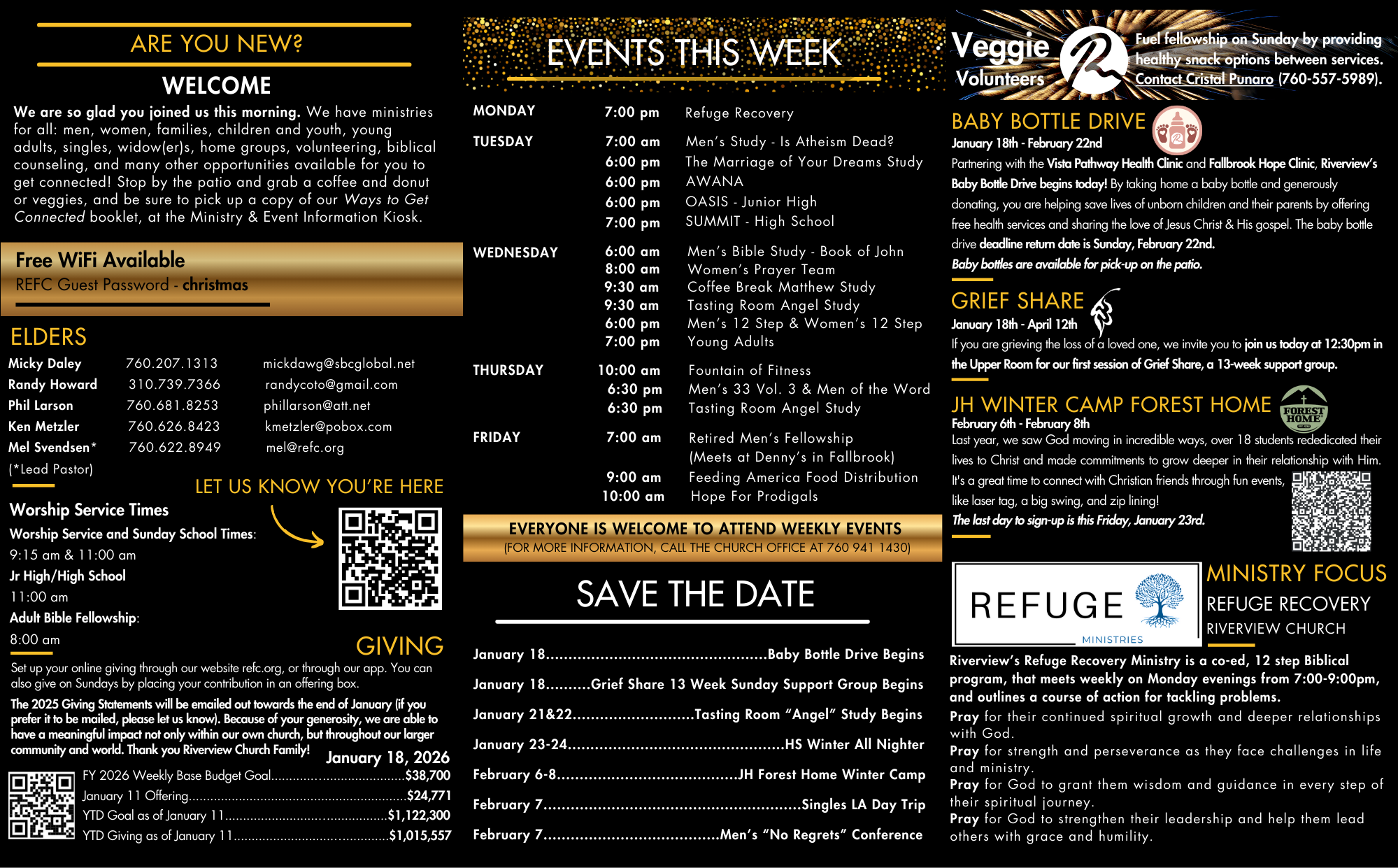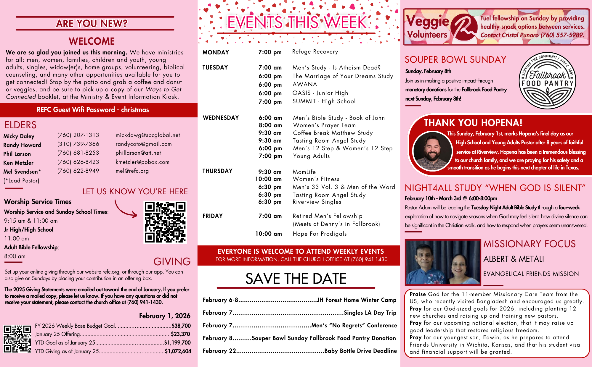 - ABF (Adult Bible Fellowship) meets every Sunday at 8 am in the Upper Room.