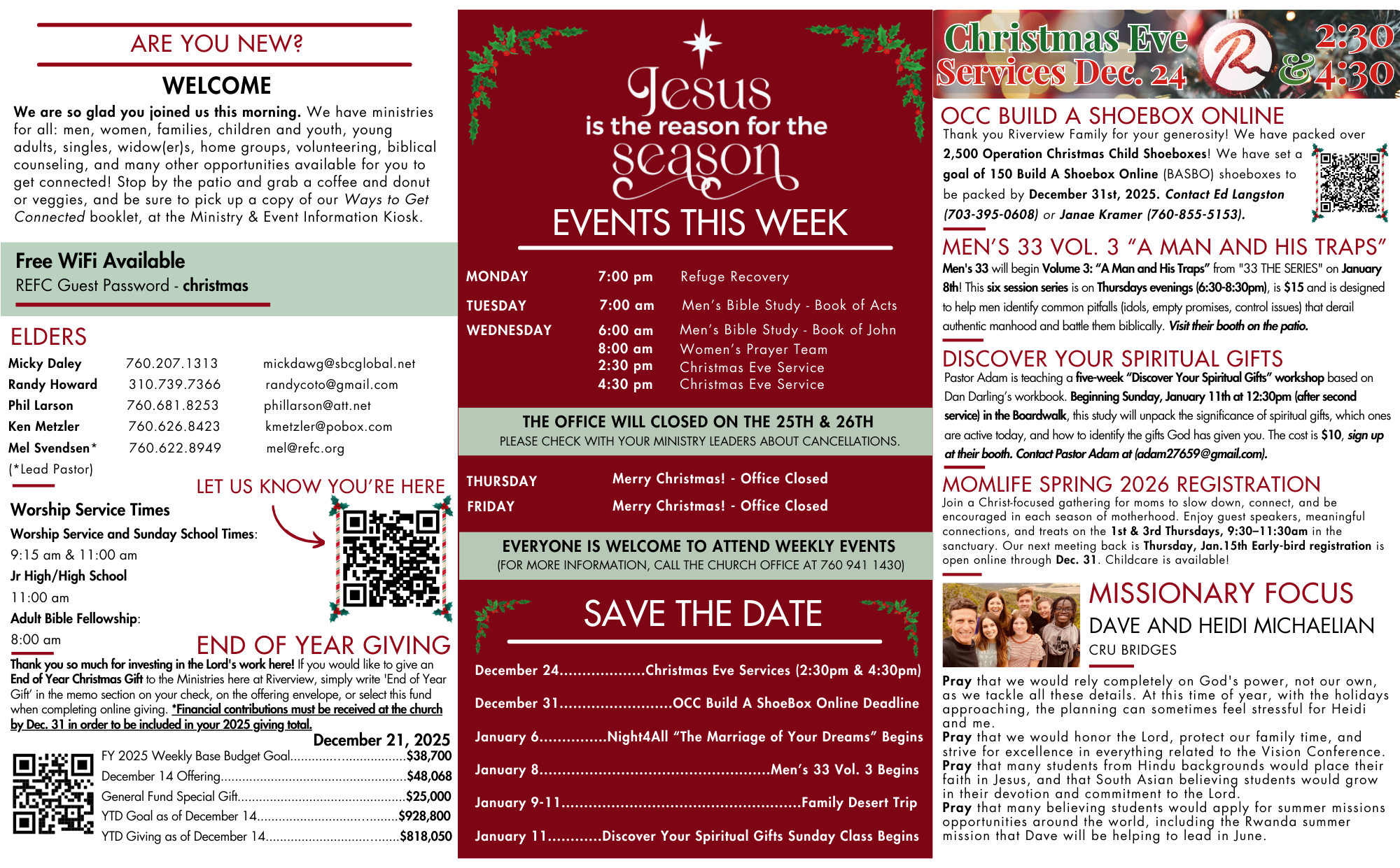 Our Elders and staff love receiving your prayer requests on Sundays, and praying for you and your family. Submit prayer requests by Clicking Here, or by submitting them via email to riverview@refc.org, or through our app.